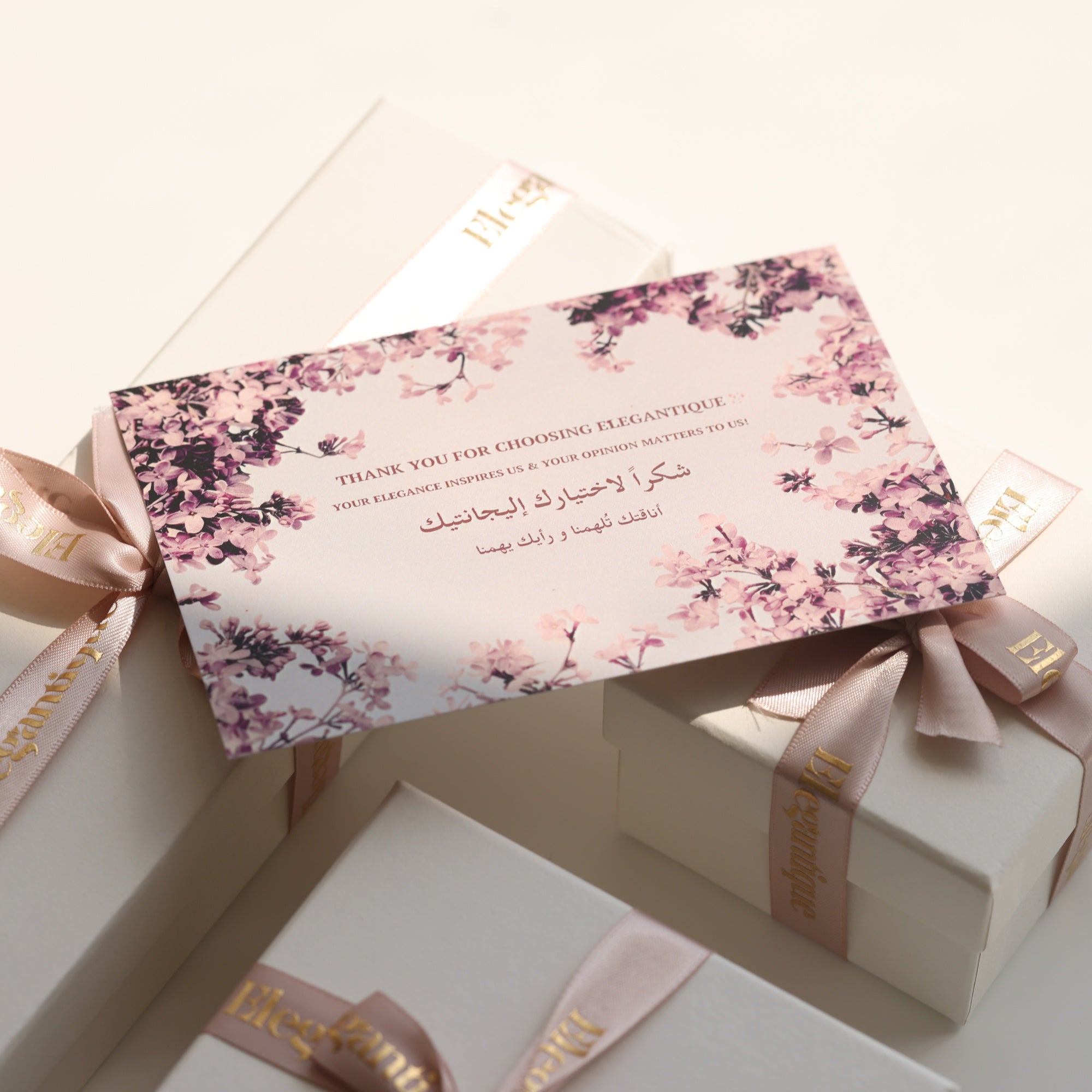 يُغلف كل طلب بفخامة إليجانتيك المميزة، مما يعزز تجربة فكّ العبوة لتواكب جمال المجوهرات.